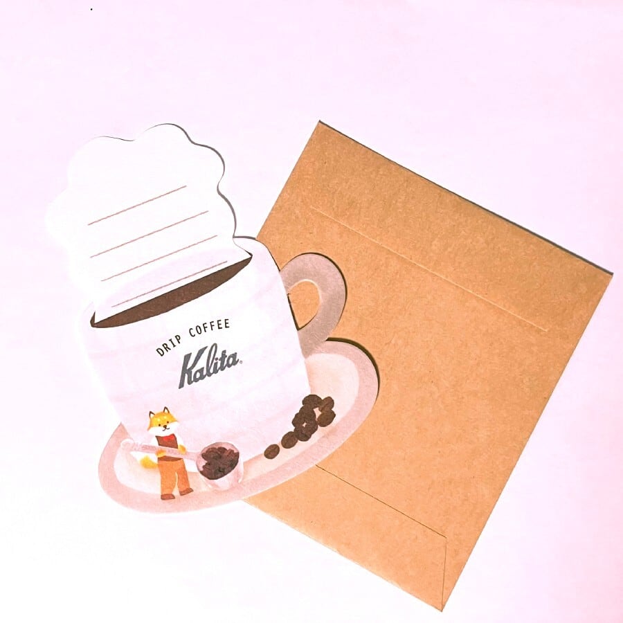 コーヒーカップから湯気型の便箋が出てくるかわいいミニレターセットです。